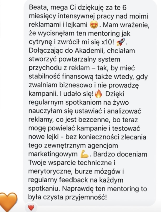 Jeśli dopiero startujesz, rozważ dołączenie do mentoringu w kolejnych miesiącach. Na początku najważniejsze będzie zaplanowanie strategii. Dzięki niej Twoje kampanie będą znacznie skuteczniejsze!