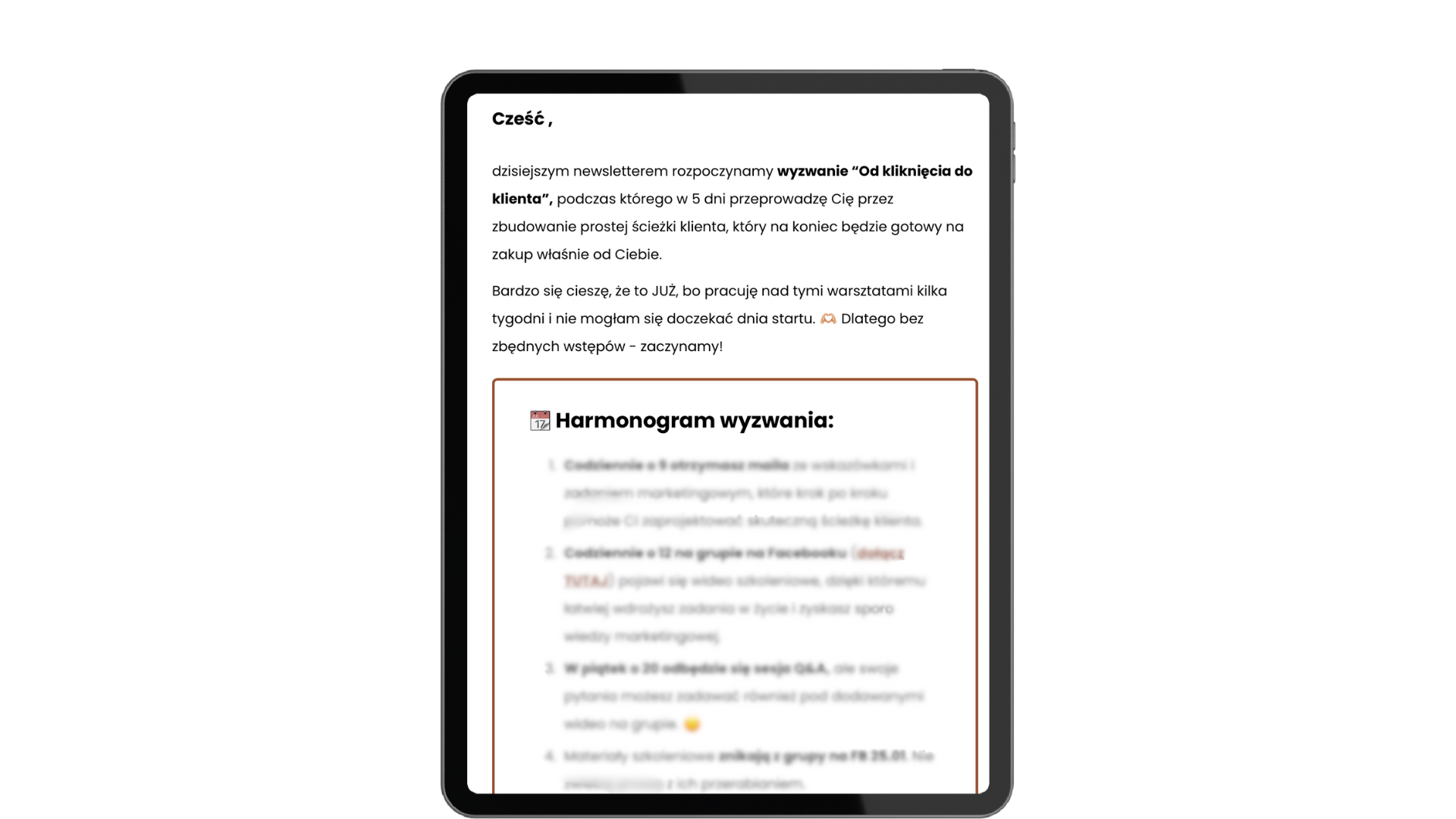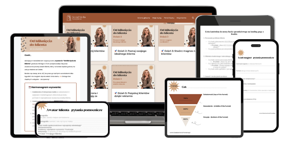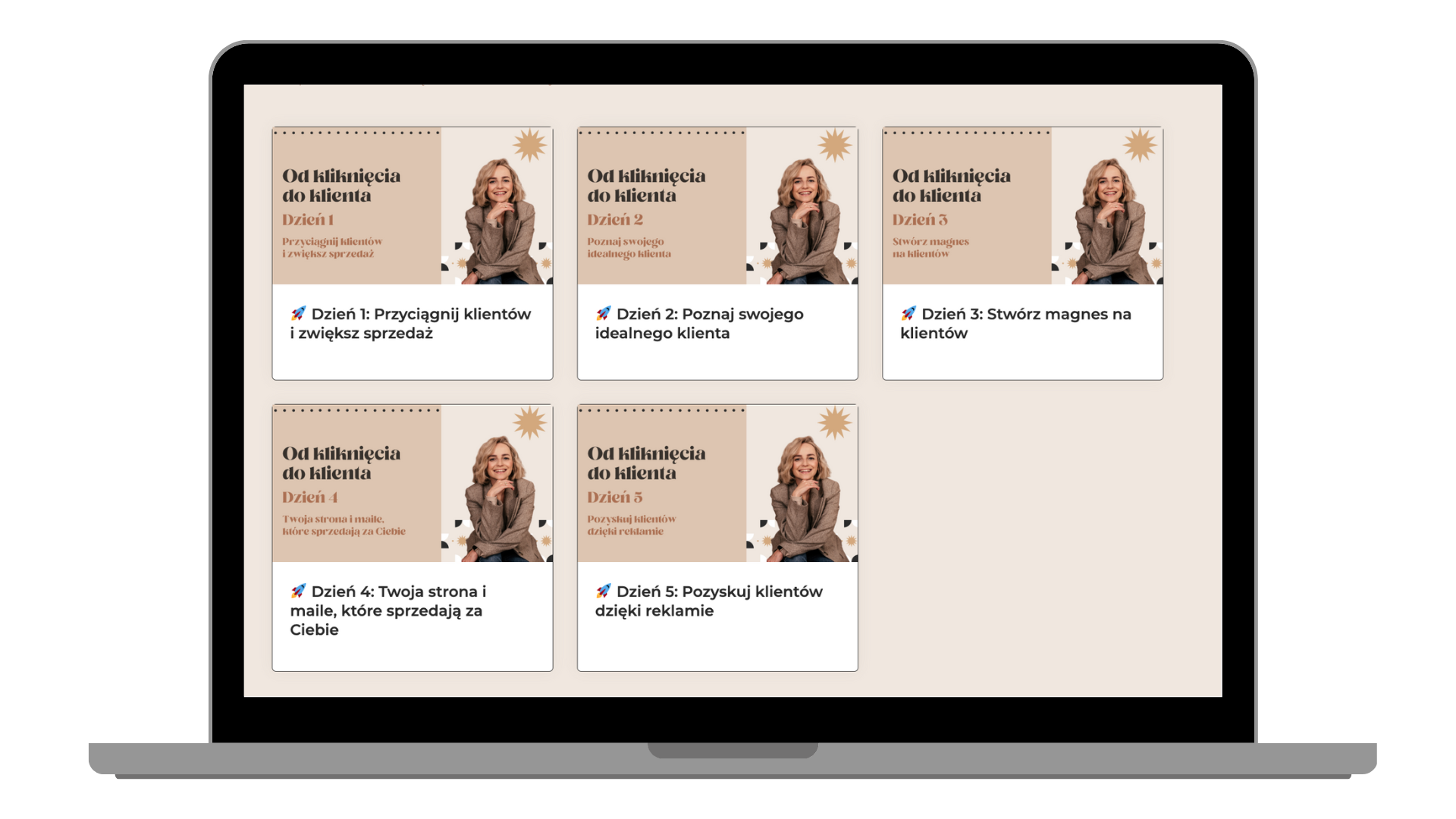 dołącz do 5-dniowego kursu mailowego dla właścicieli małych biznesów i marek osobistych. Zbuduj prostą i skuteczną ścieżkę klienta, która uporządkuje Twój marketing, przyciągnie wymarzonych klientów i zamieni kliknięcia w realne zyski.